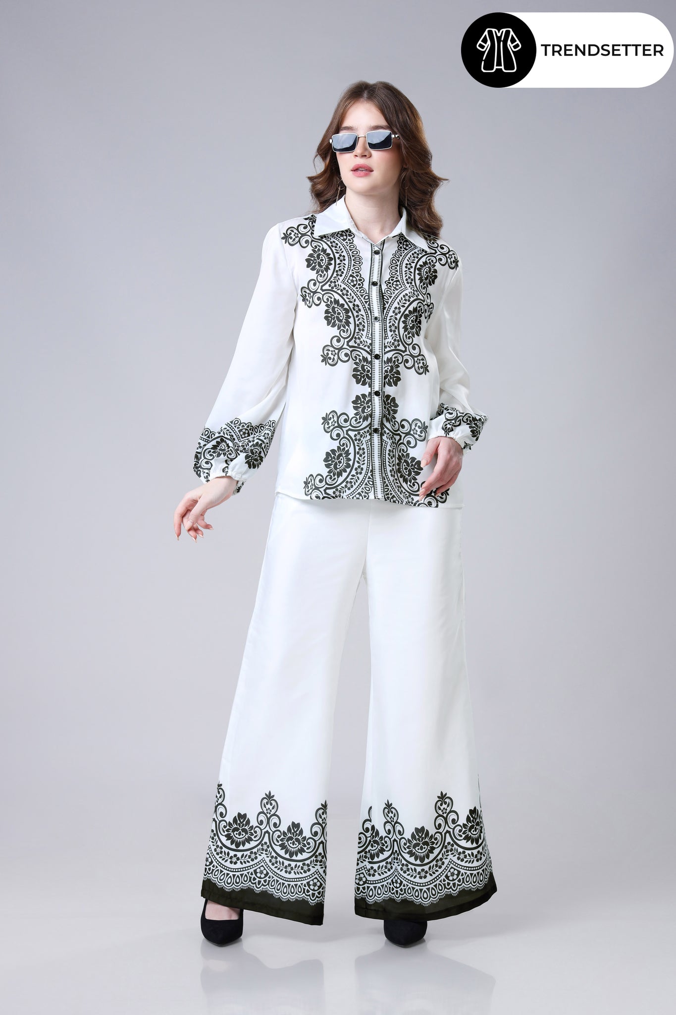 Pattern Play - Luxe Black And White Paisley Shirt And Bottom Co-Ord Set