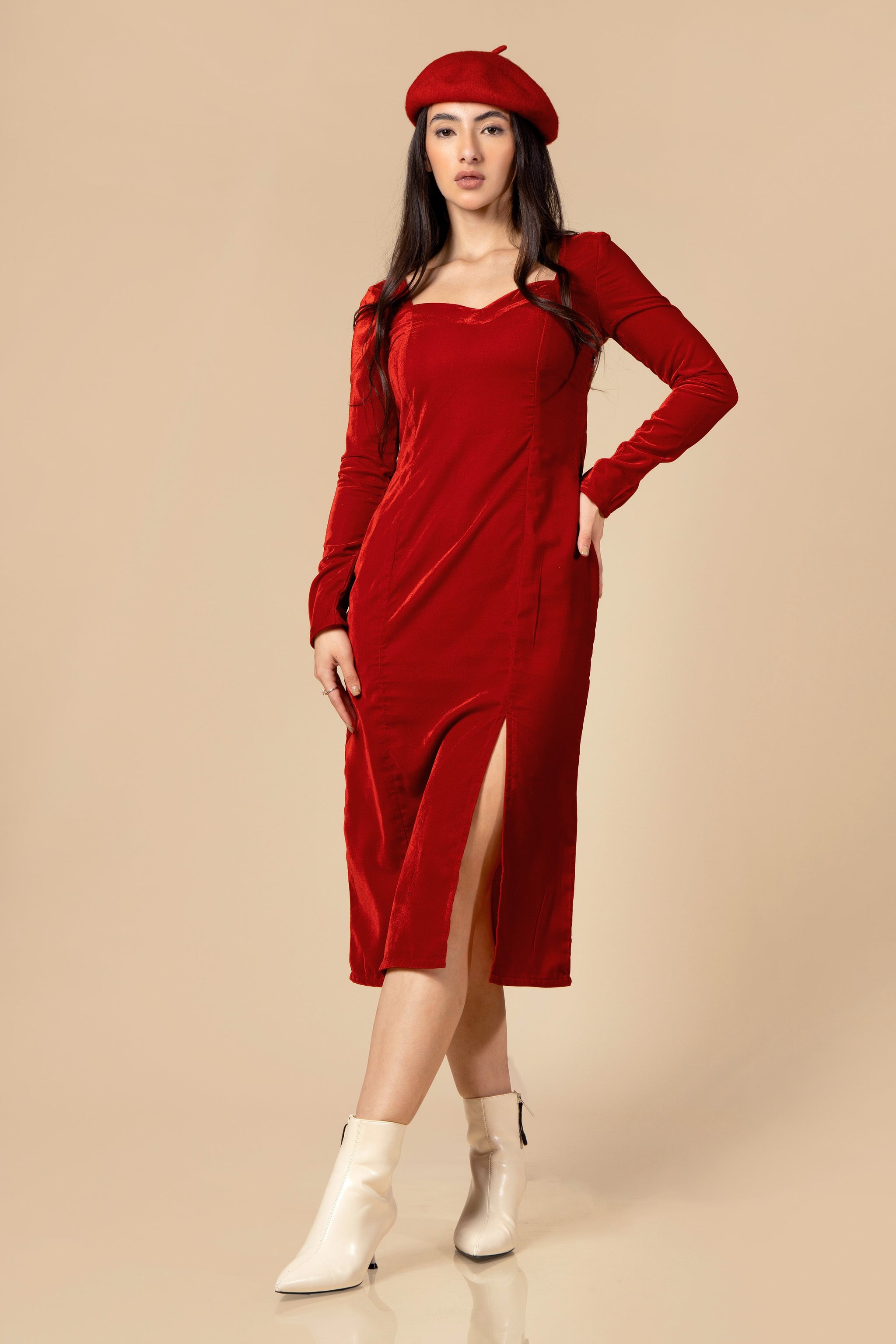 Velvet dresses are the perfect example of exquisite attire. Velvet being a soft and luxurious fabric is widely acclaimed for its versatility. This dress makes you look smart and your appearance remarkable. You can even layer it up with velvet jackets and match it with heels and a bit of accessory. This dress can be worn at parties, special occasions, holidays, etc.