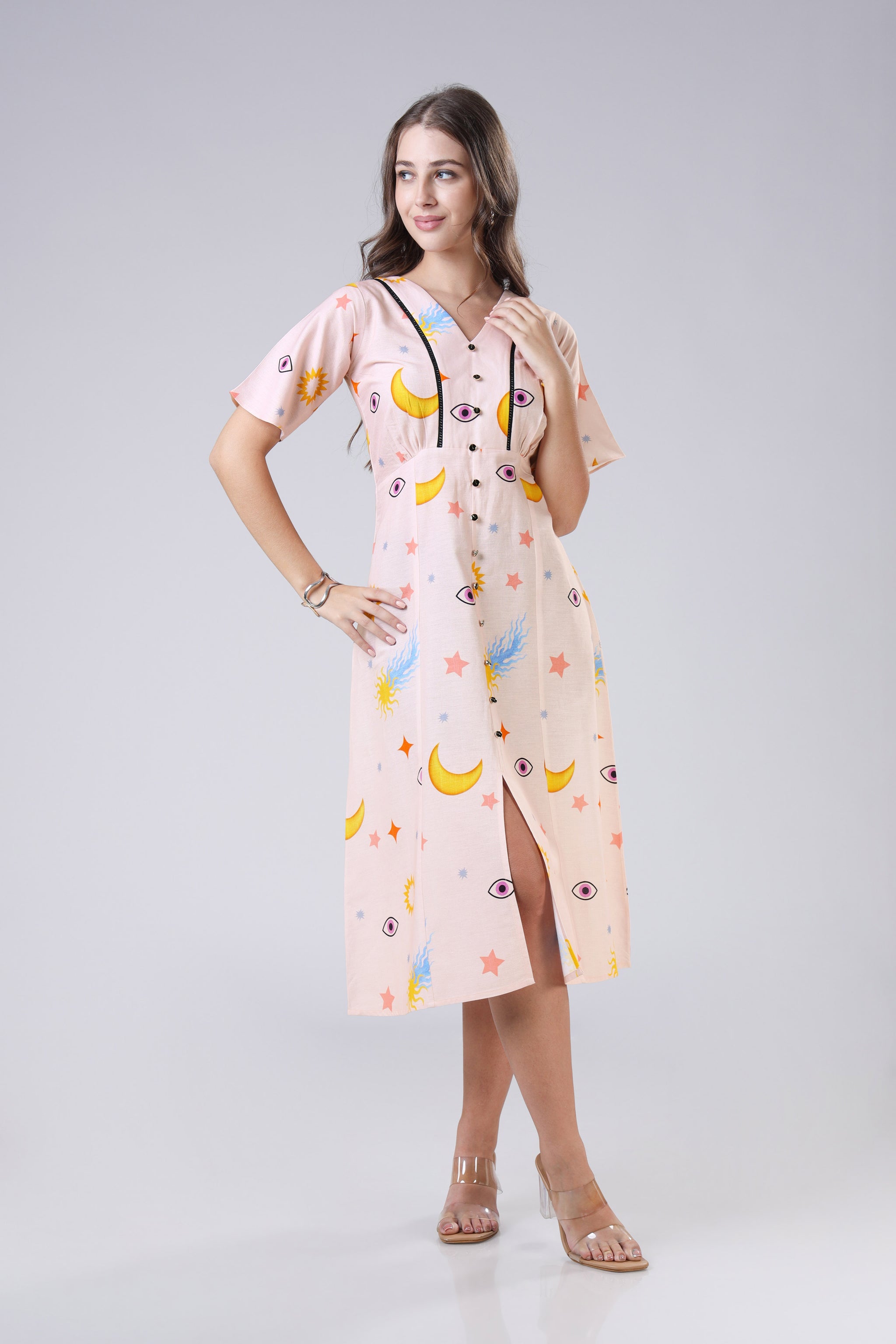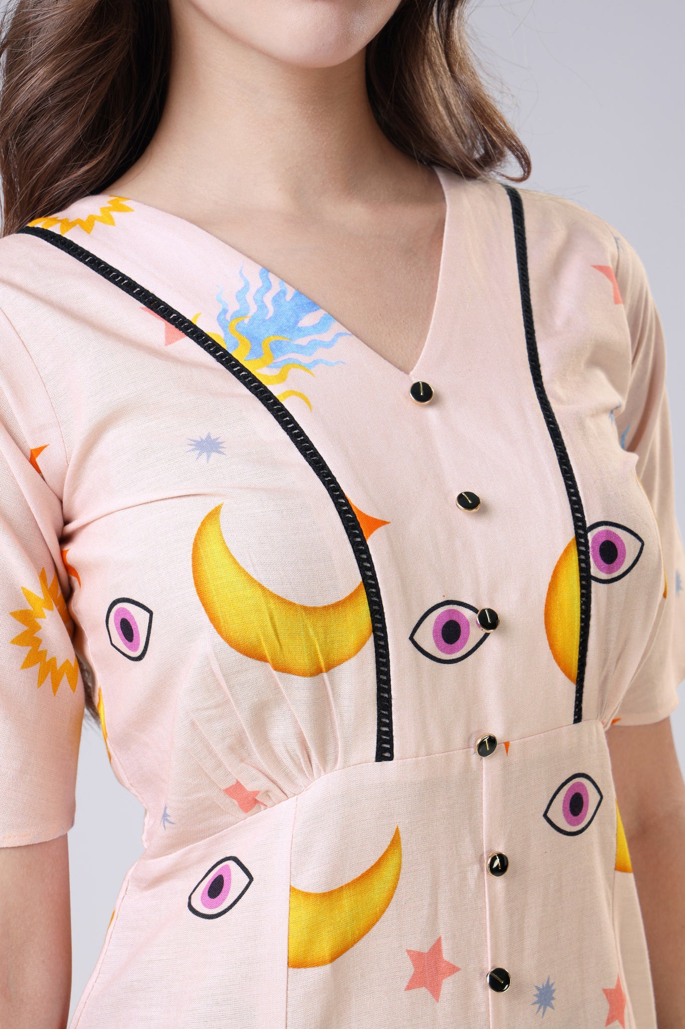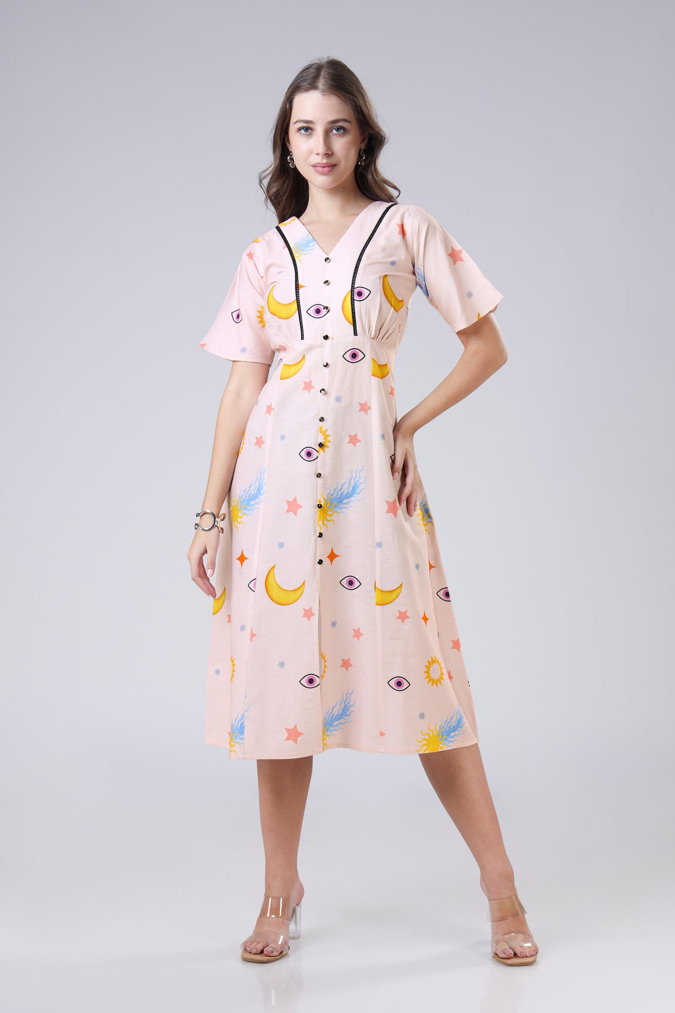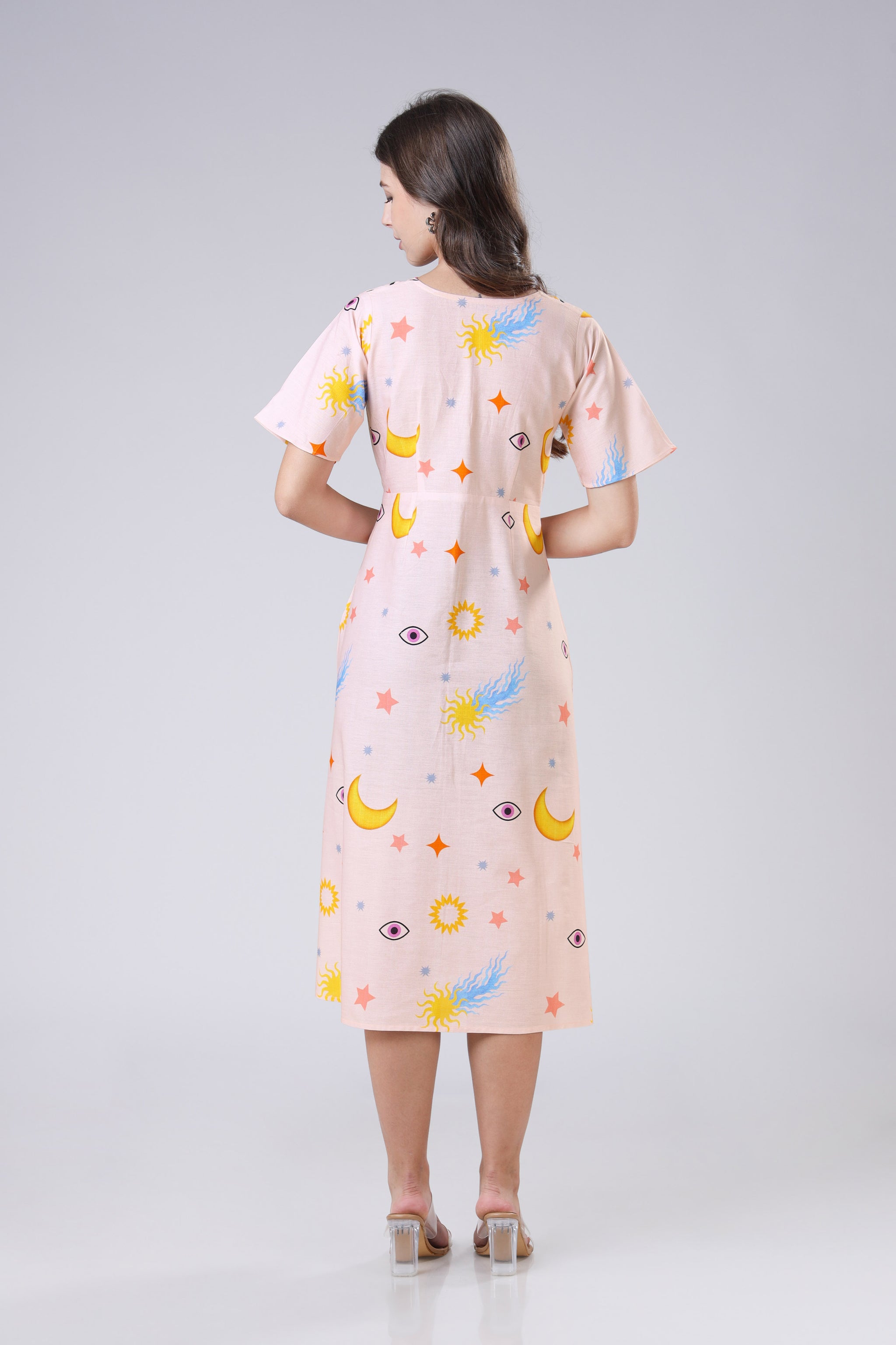 Cosmic Muse Cotton Dress - Soft Flow, Star Print, Viral Aesthetic 💫