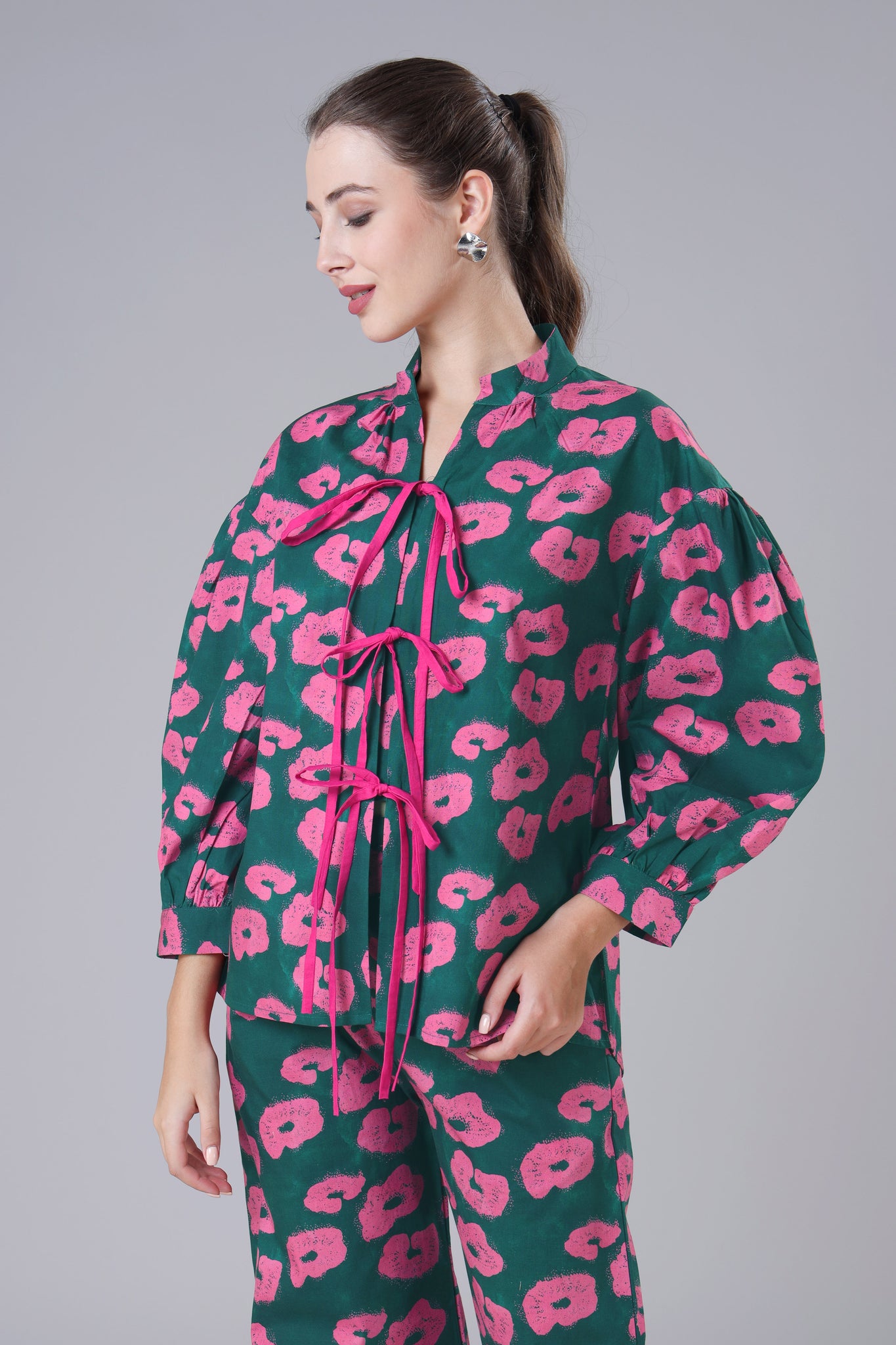 Tie-Up Detail Womens Floral Co-Ord Set - Modern Feminine Look
