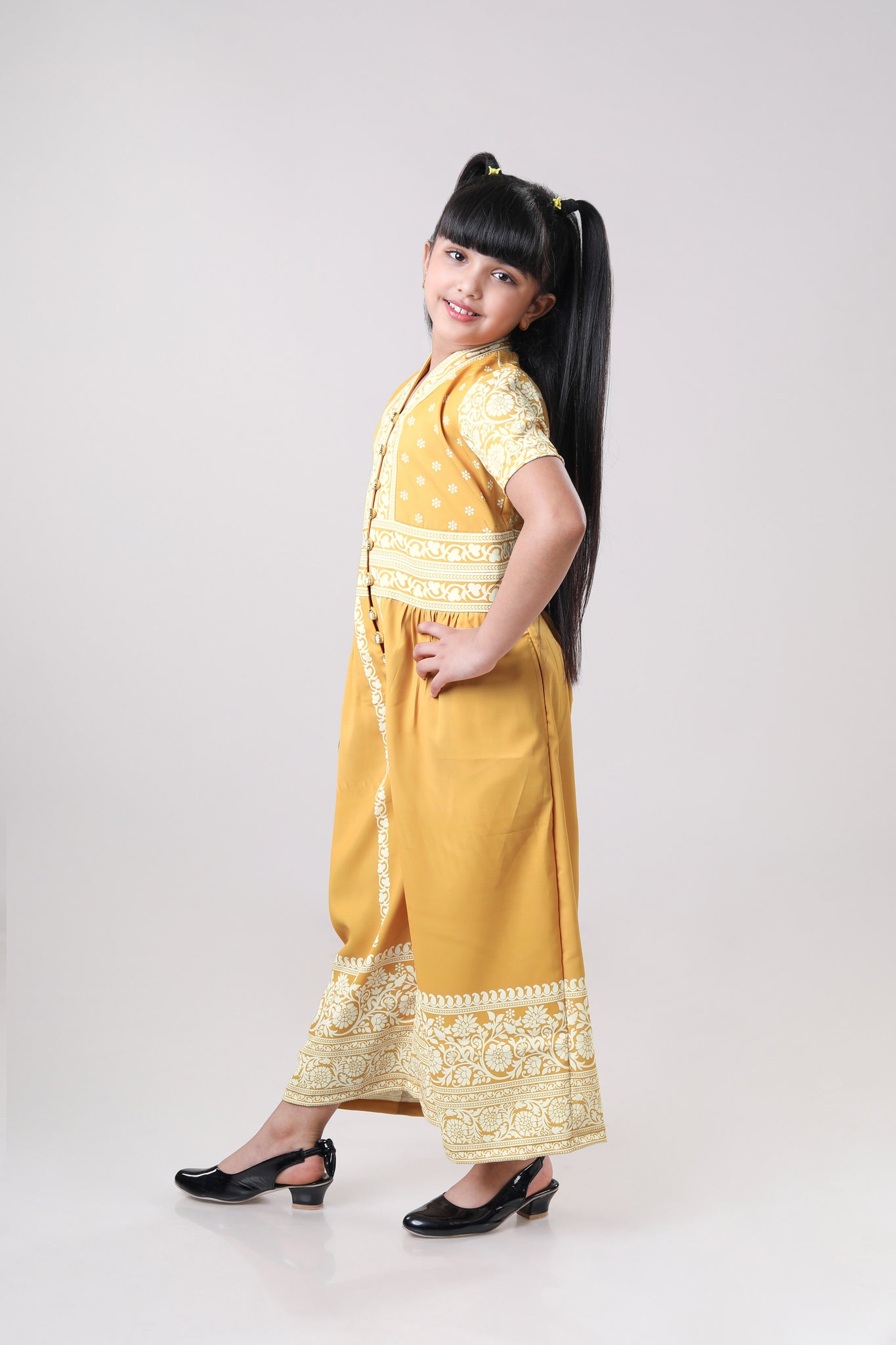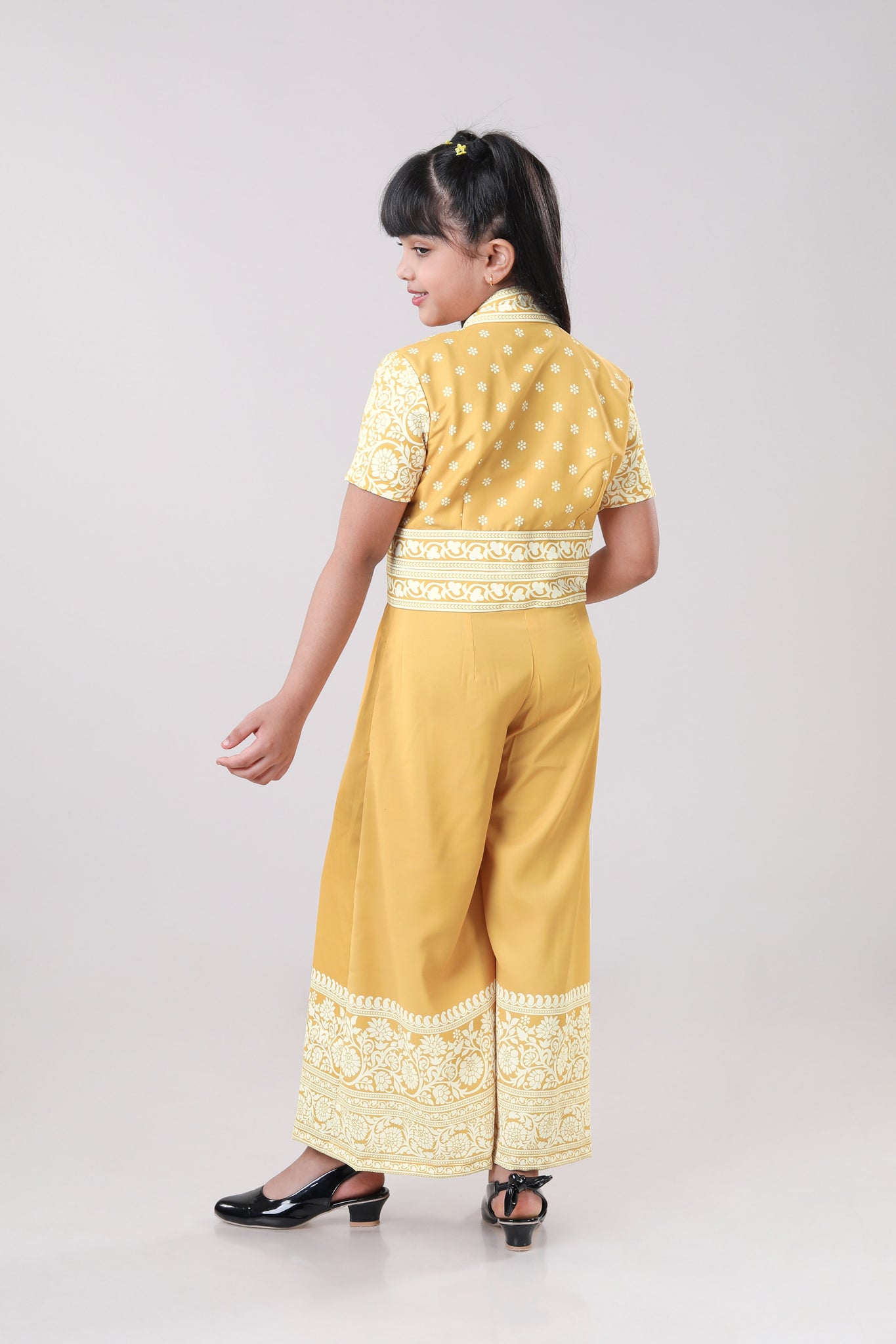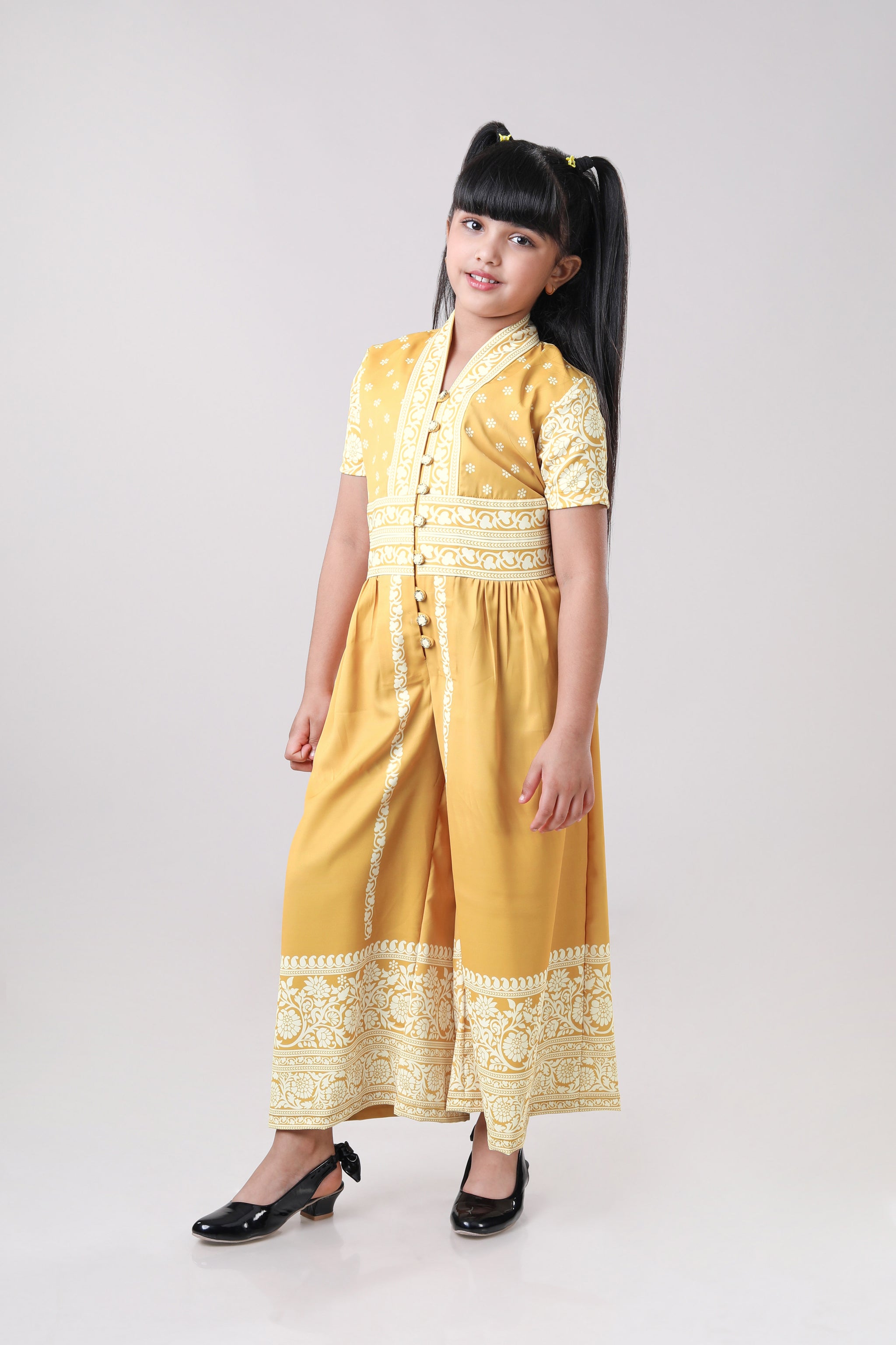 Golden Sunshine Floral Wide-Leg V Neck Wide Leg Jumpsuit For Girls