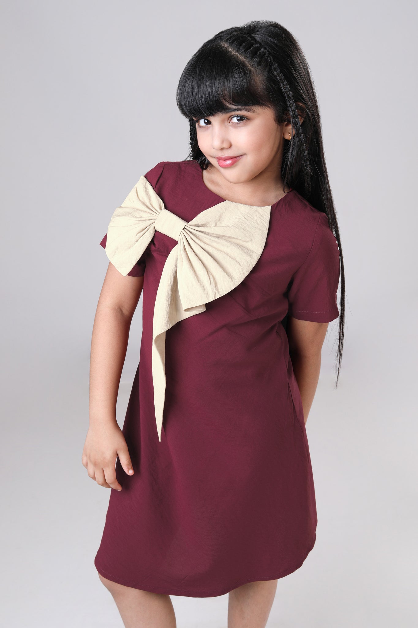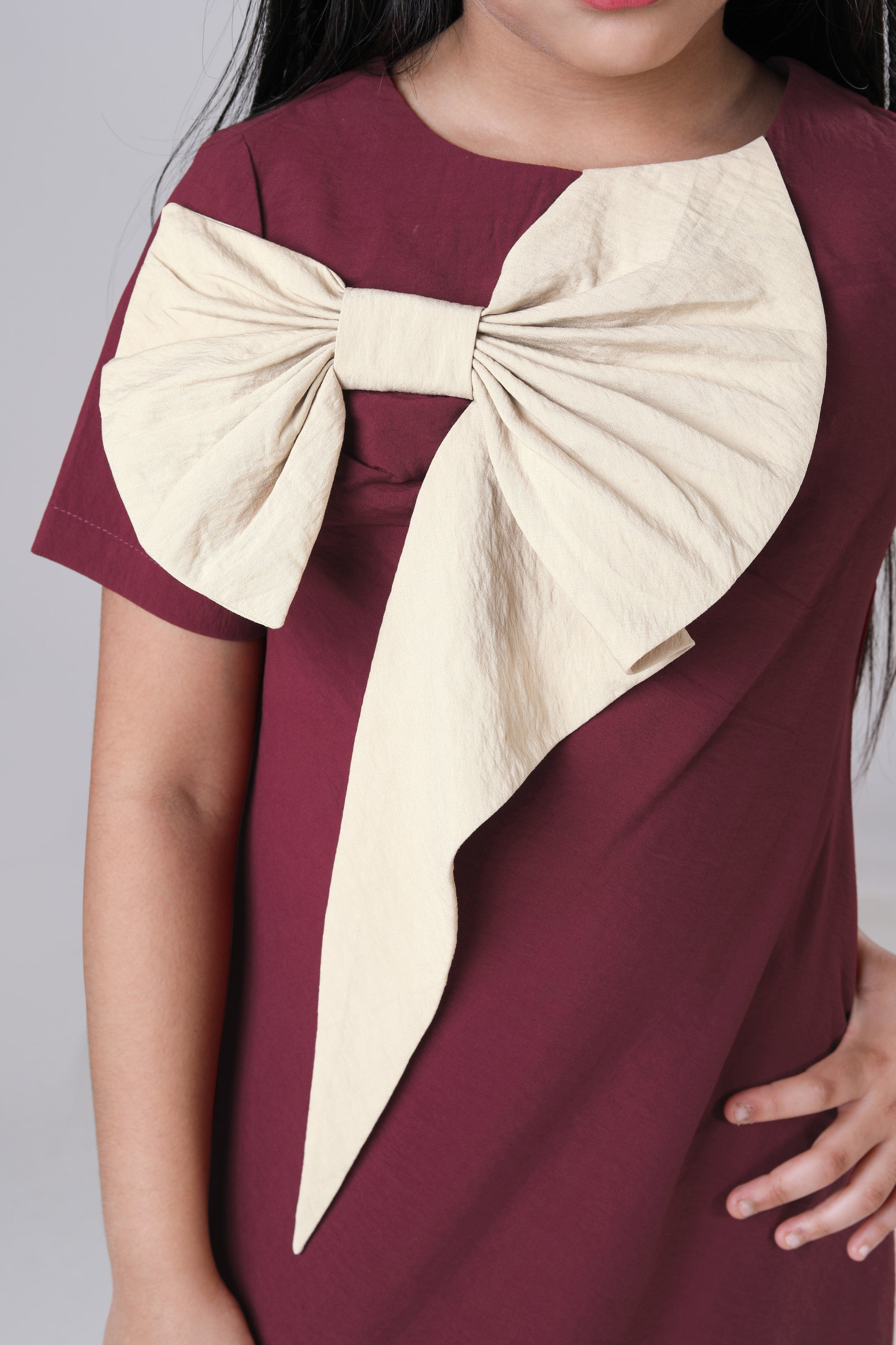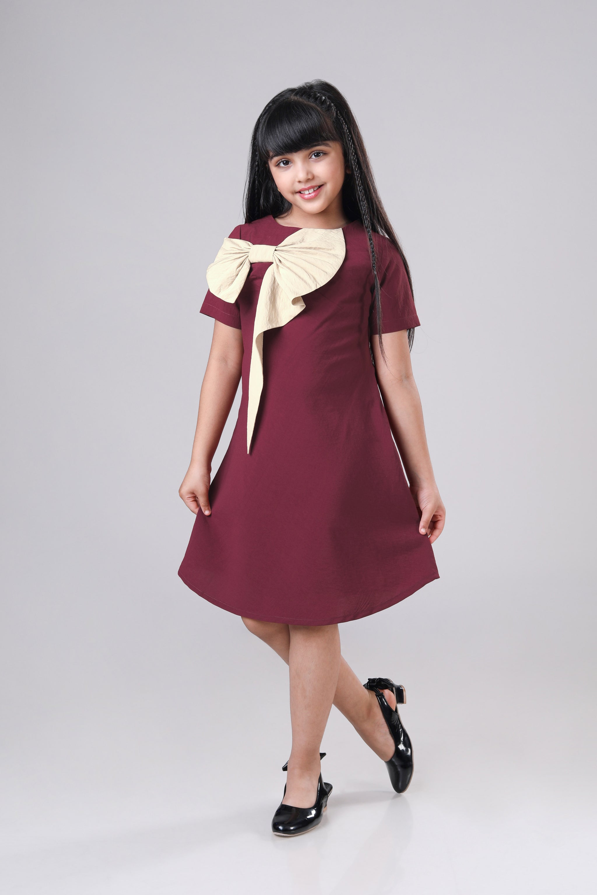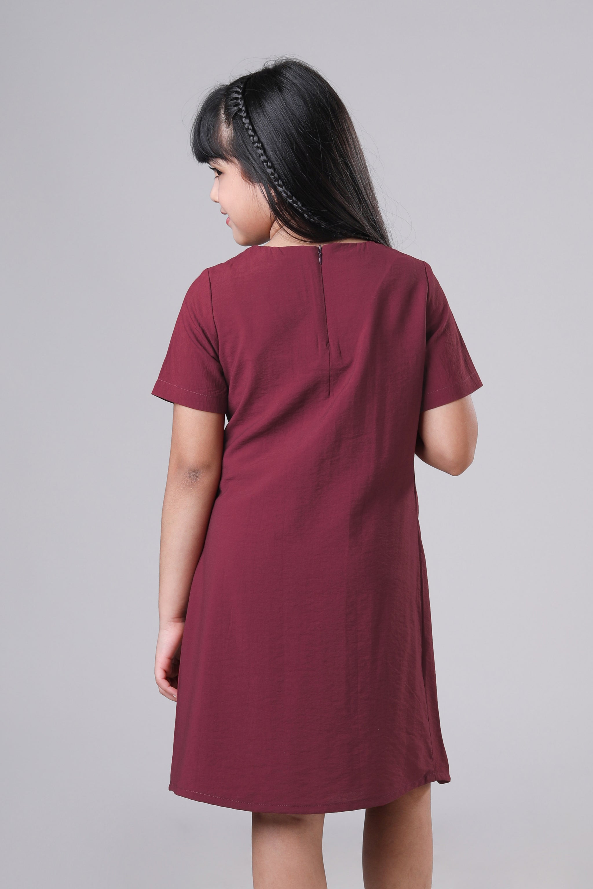 Plain Maroon Midi Pure Cotton Dress For Girls