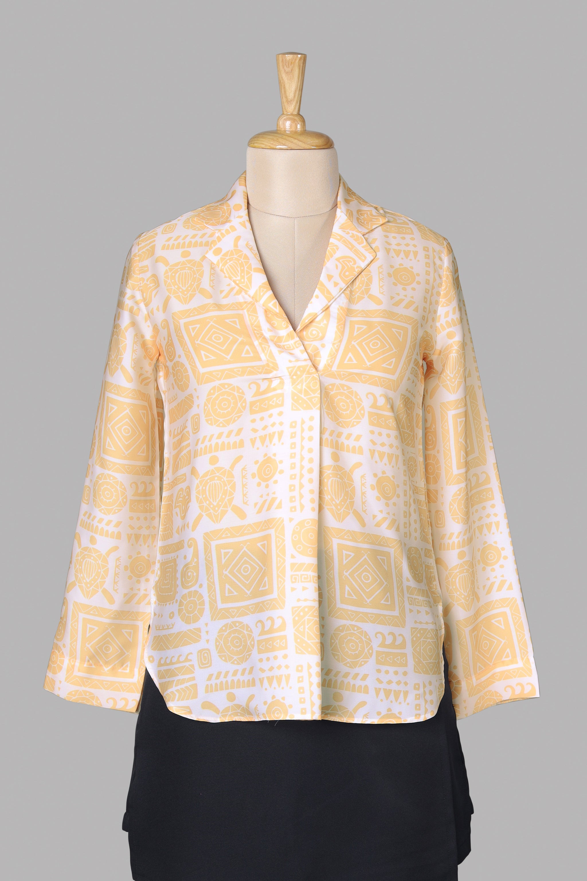 Ethnic Notched Collar Full Sleeve Top For Women