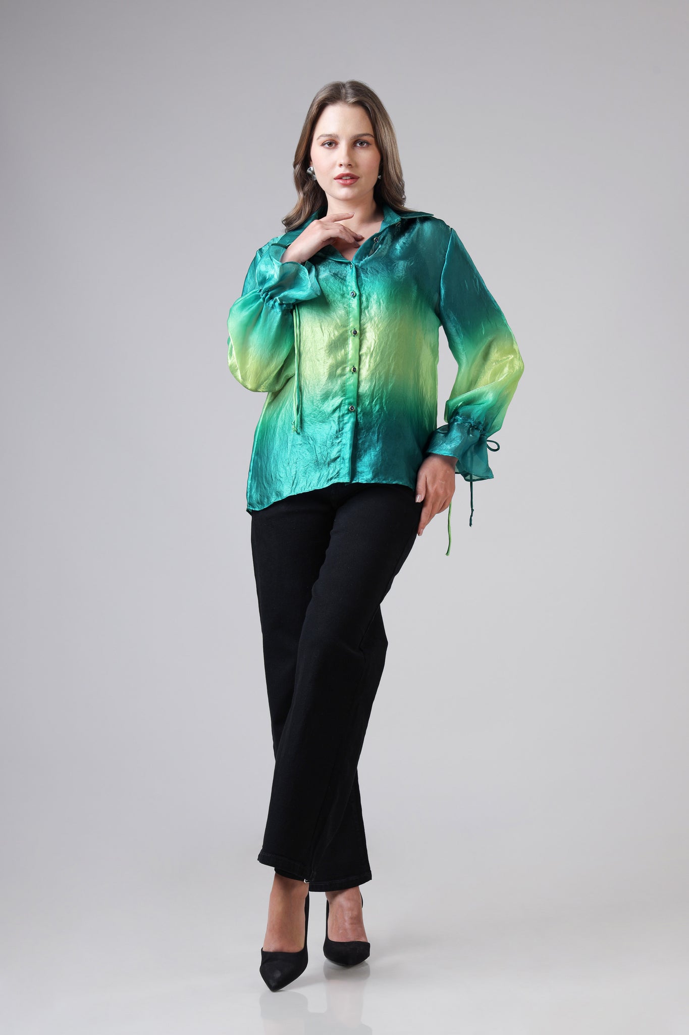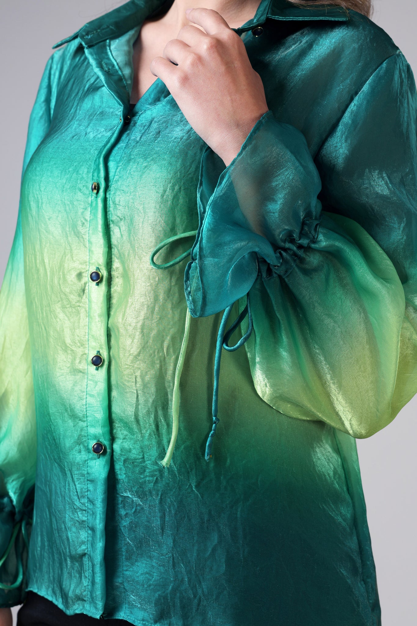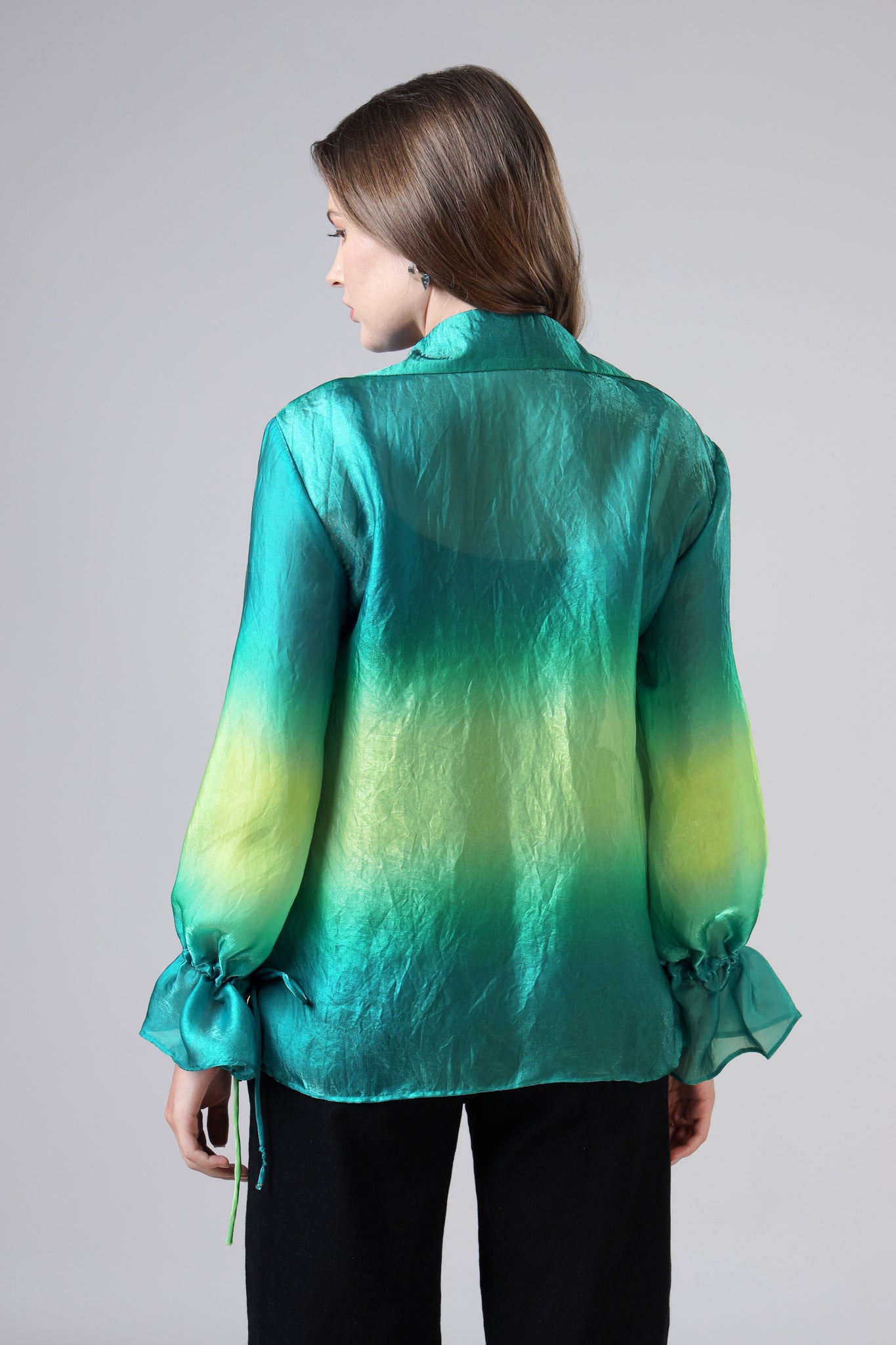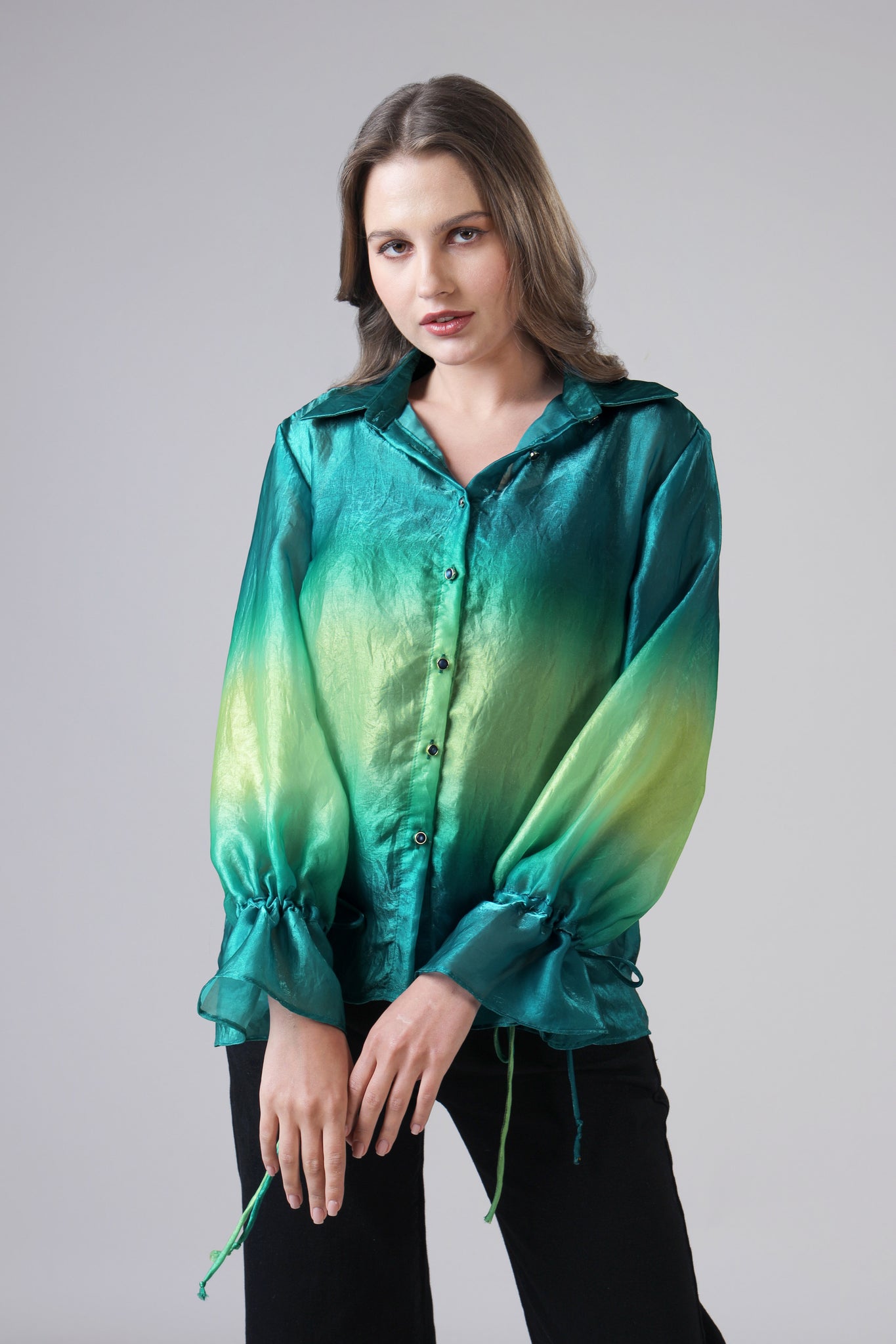Teal Gradient Outing Womens Shirt With Cuffed Sleeves