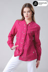 Premium Pearl Motif Hand Work Ruffle Cotton Shirt For Women