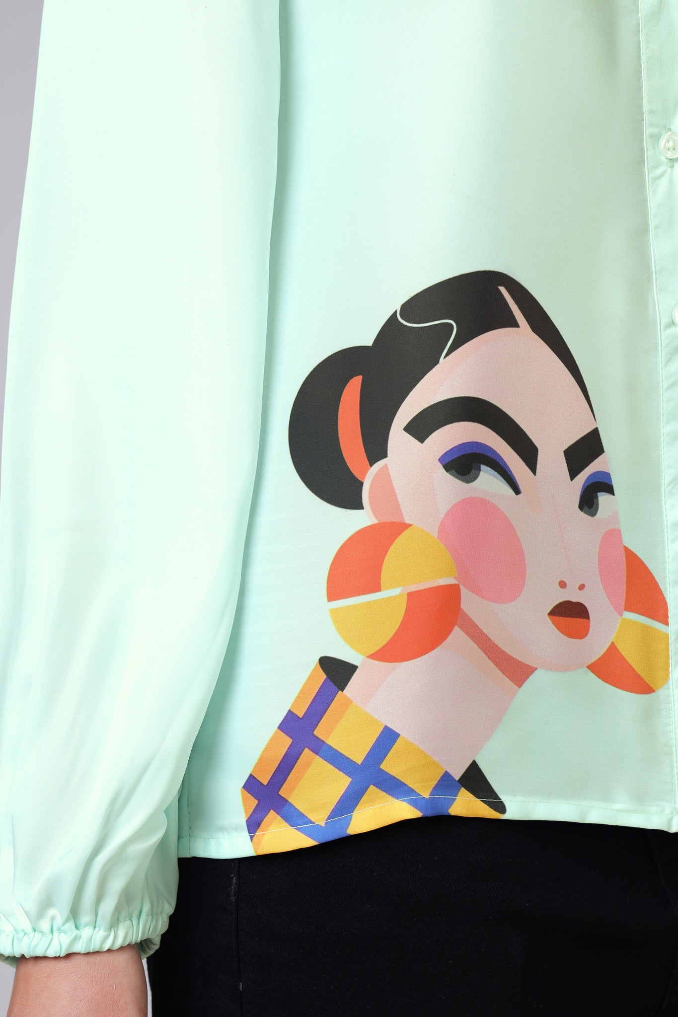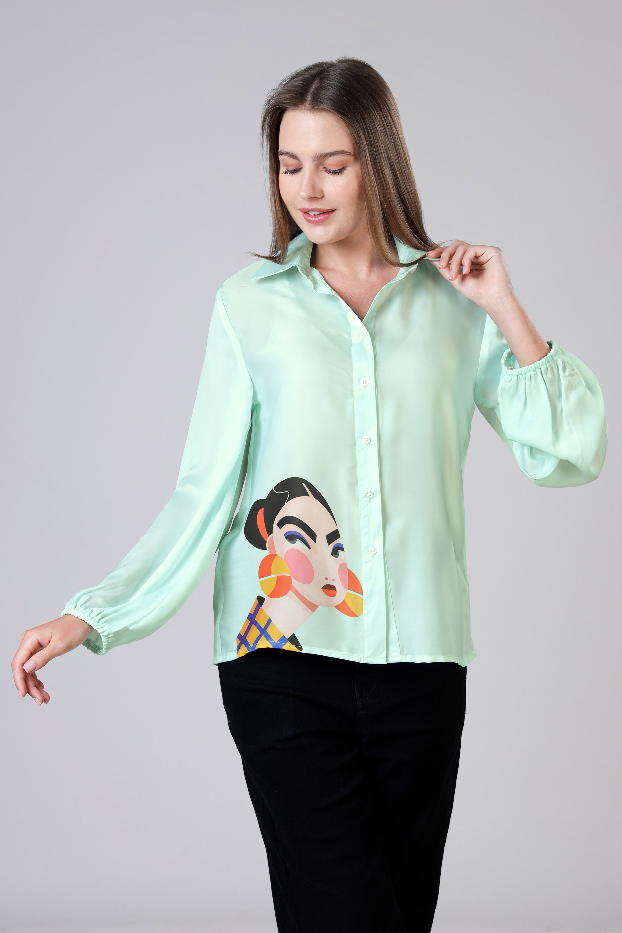 Quirky Graphic Button-Up Lightweight Casual Womens Shirt