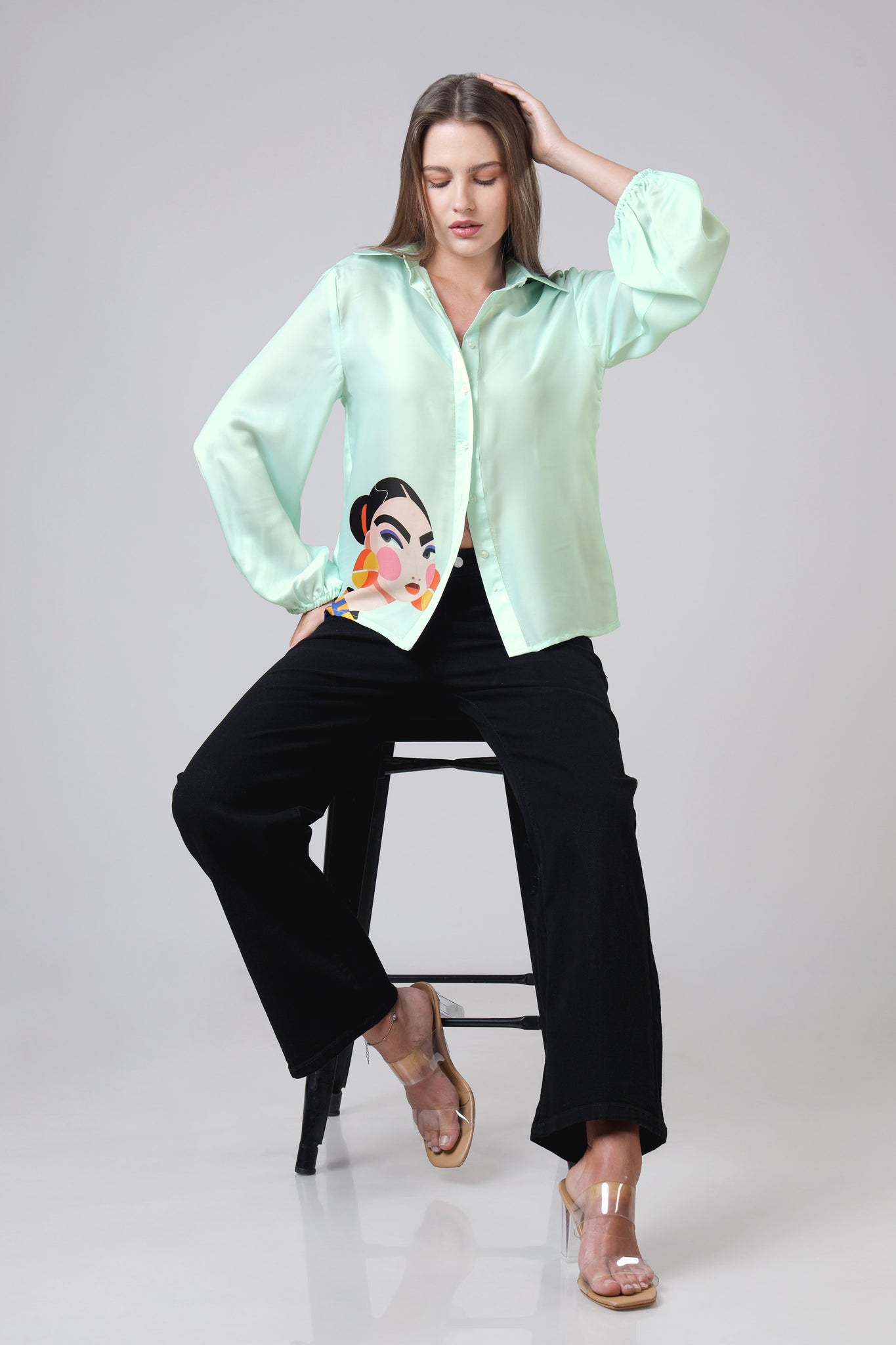 Make a bold yet refined statement with this abstract swirl print shirt, designed for modern women who love standout style with everyday comfort ✨. Crafted in a smooth, lightweight fabric, this collared button-down shirt features a classic regular collar, full sleeves, and a relaxed silhouette that drapes effortlessly on the body