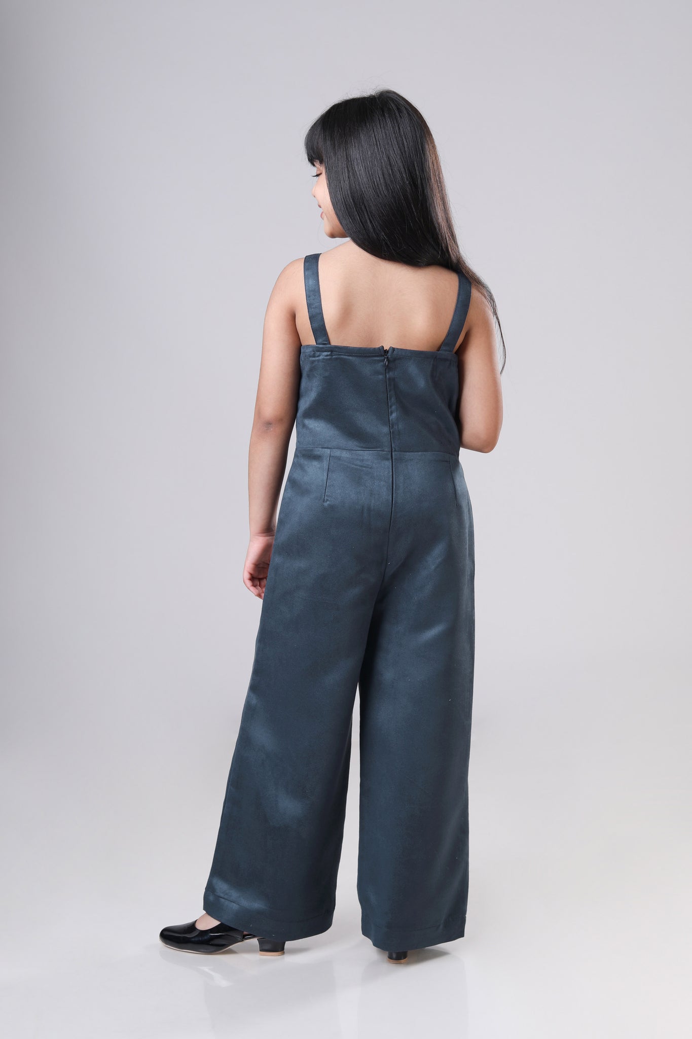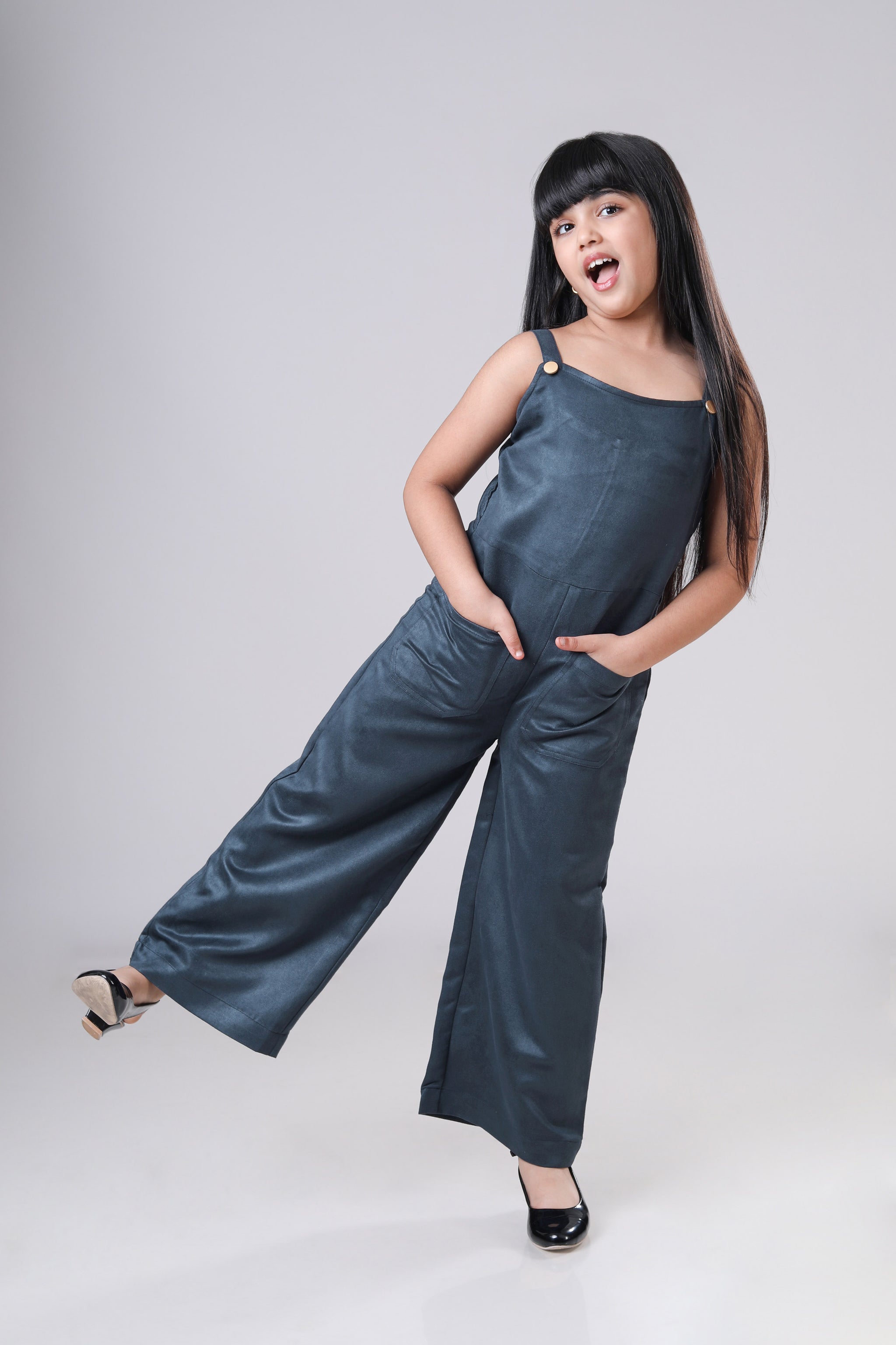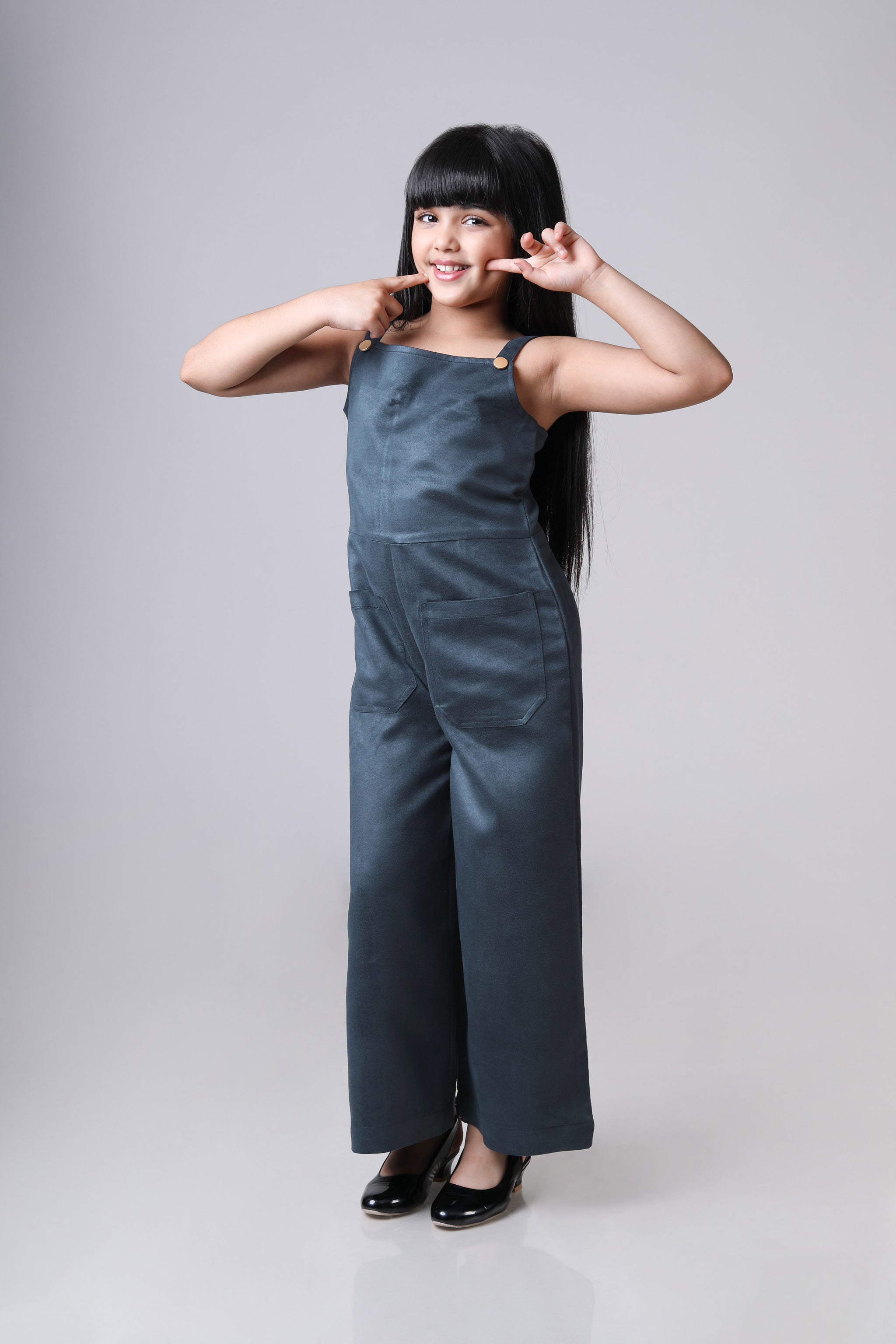 Classic Font Pocket Suede Dungaree For Girls