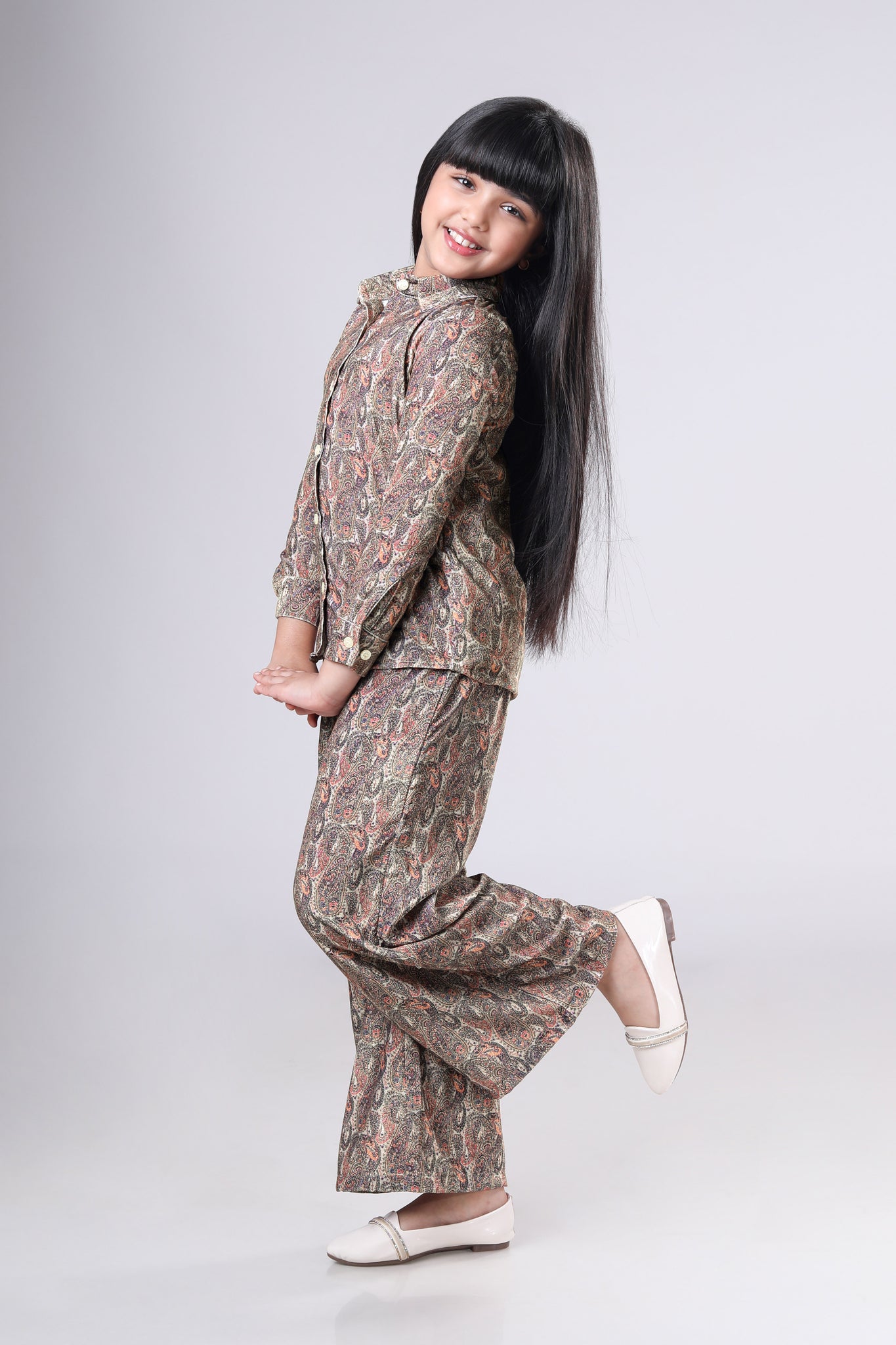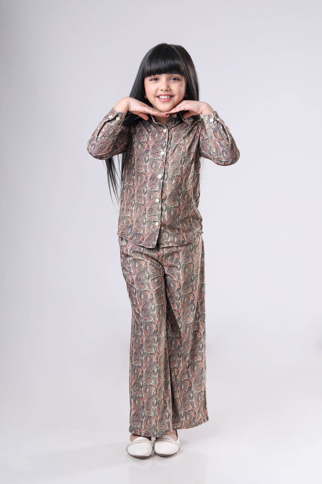 Seamless Paisley Printed Velvet Co-Ord Sets For Girls