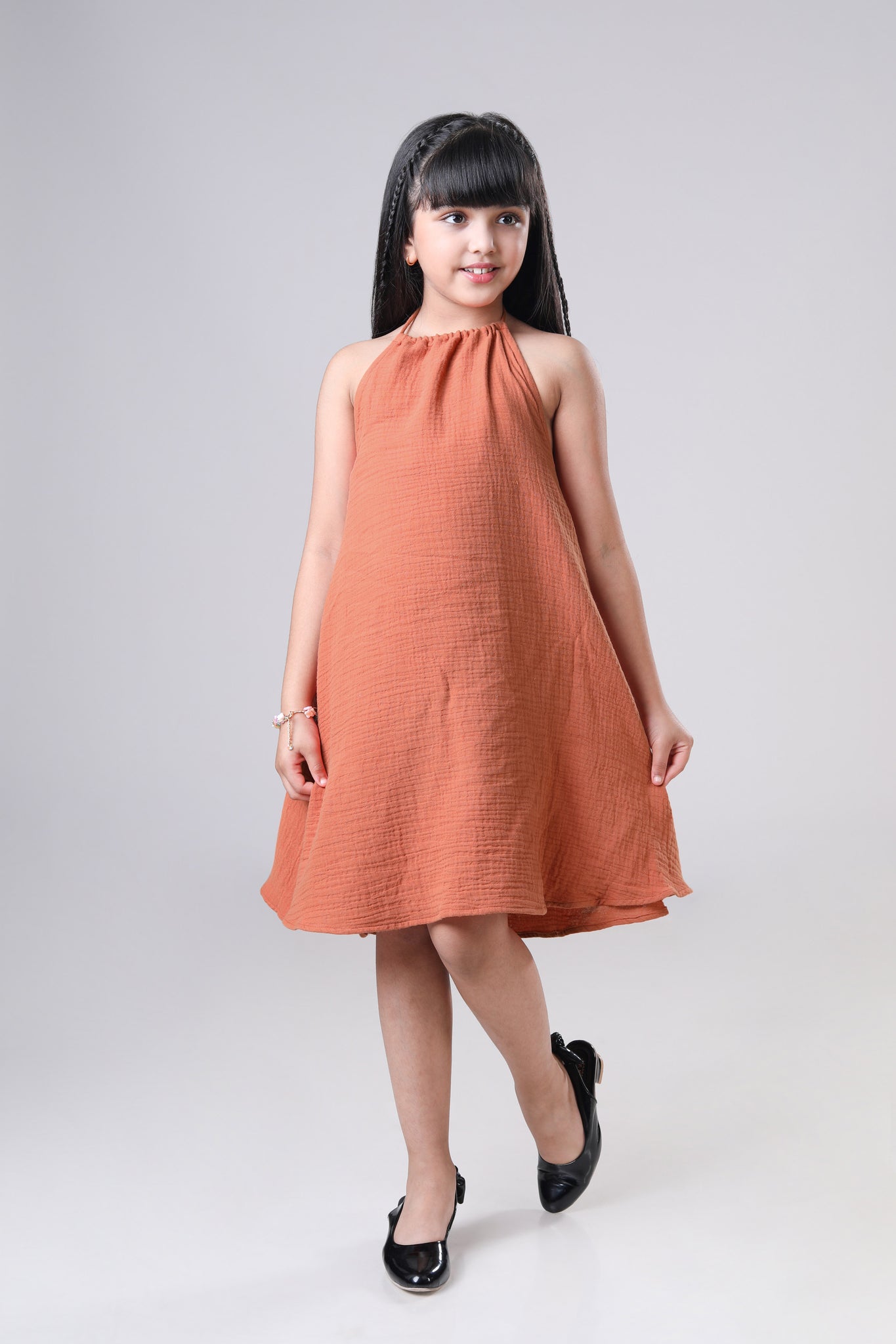 Smart Casual Girls Halter Dress - Airy And Skin Friendly