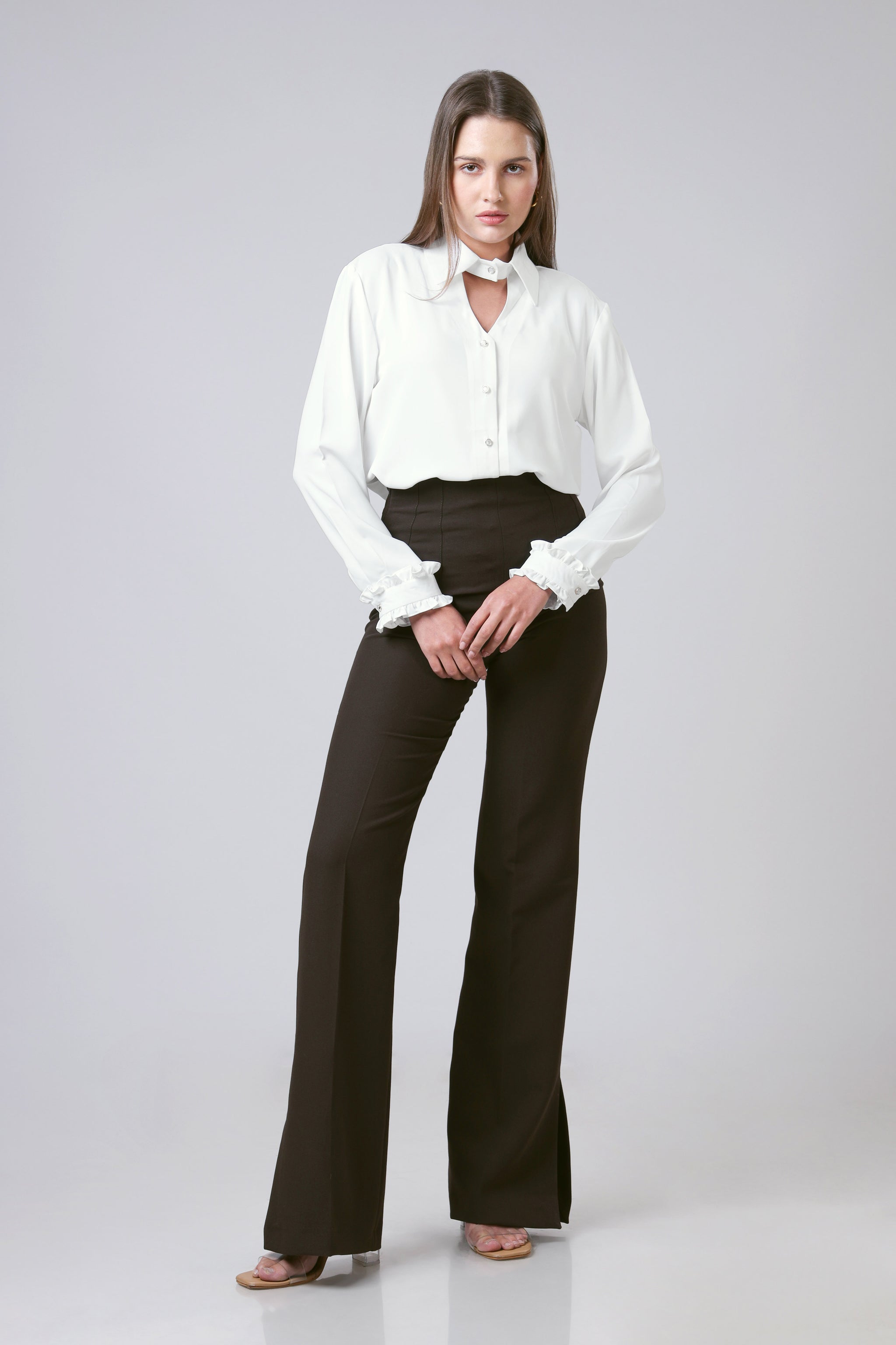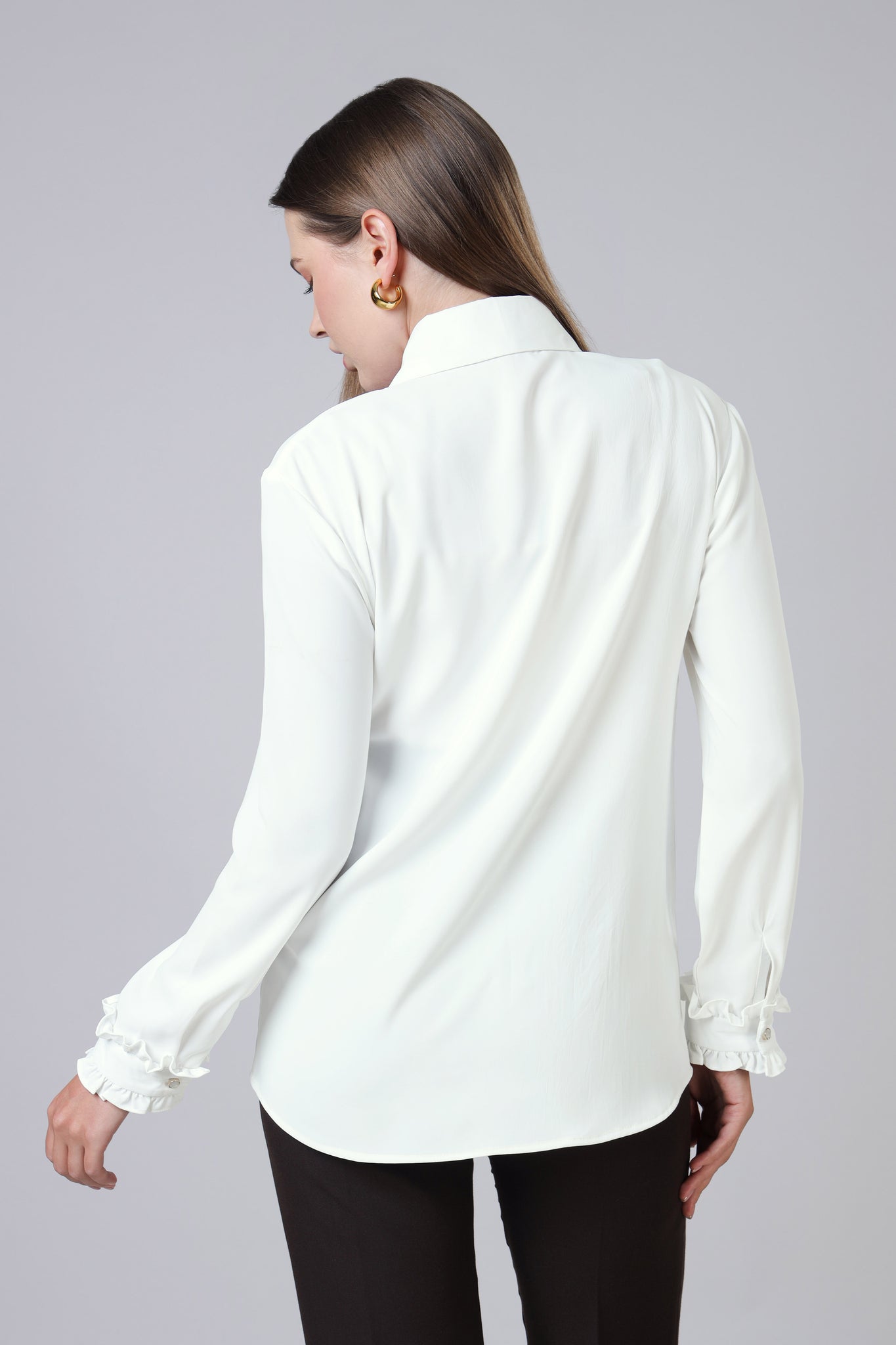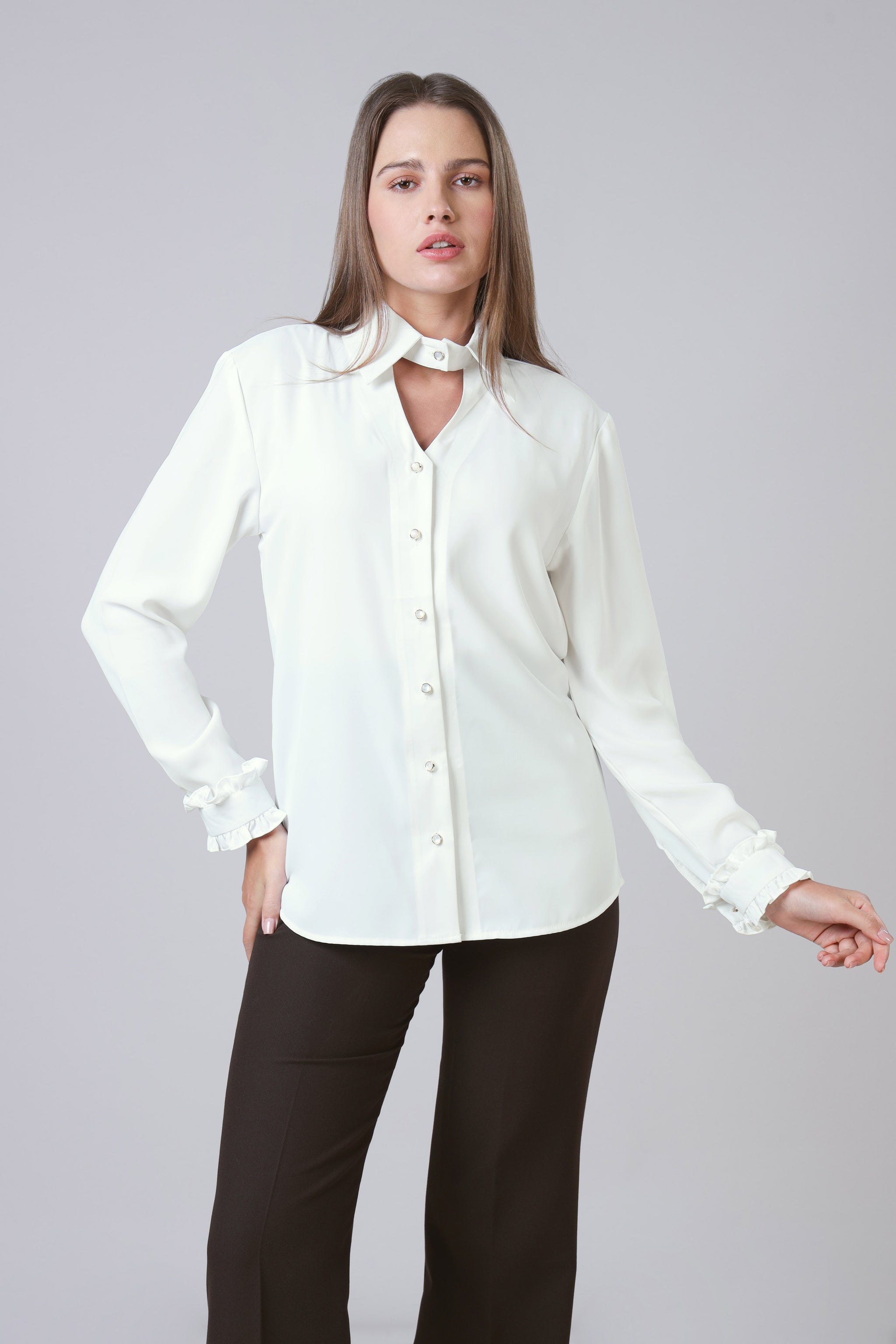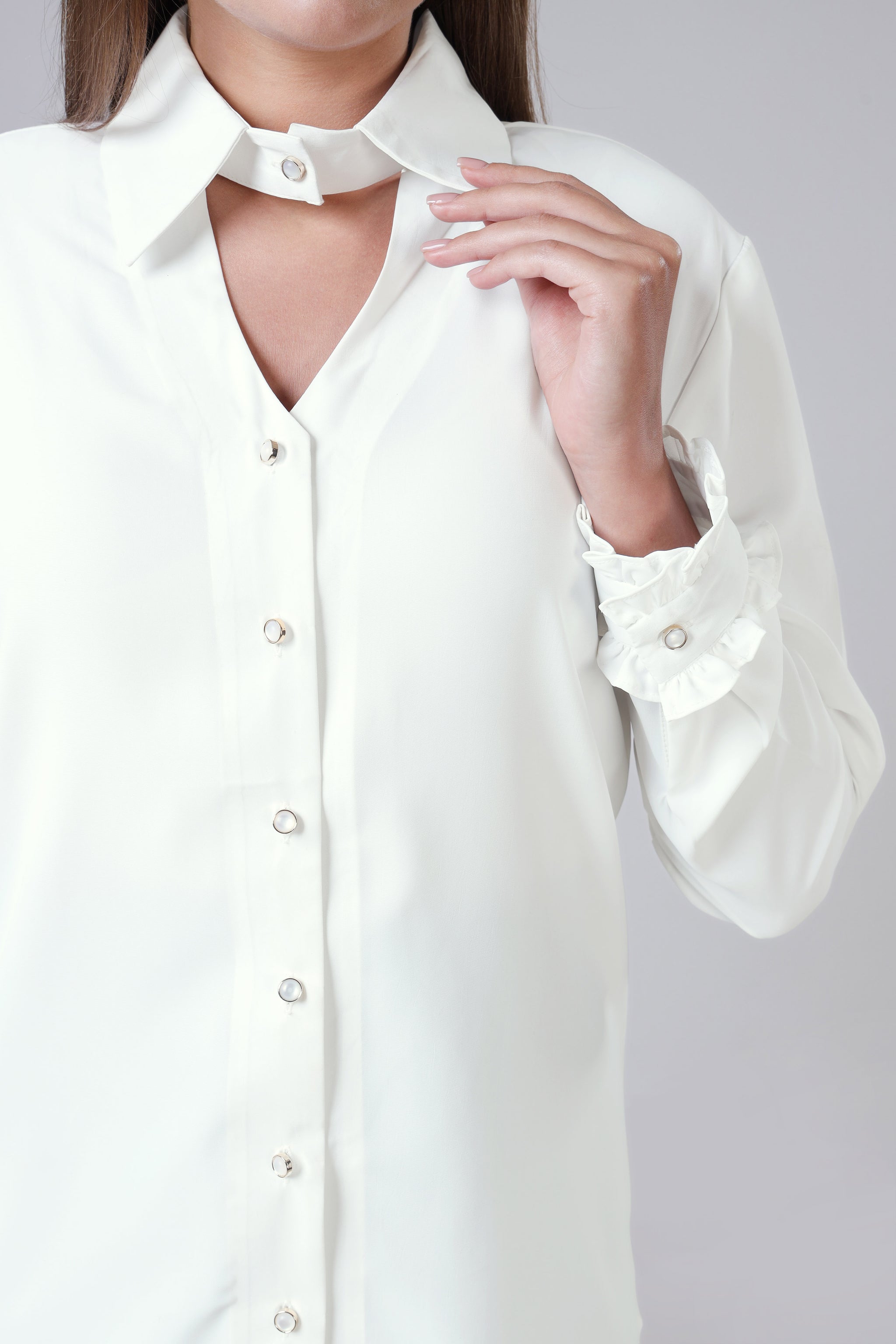 Solid White Special Neckline Womens Shirt